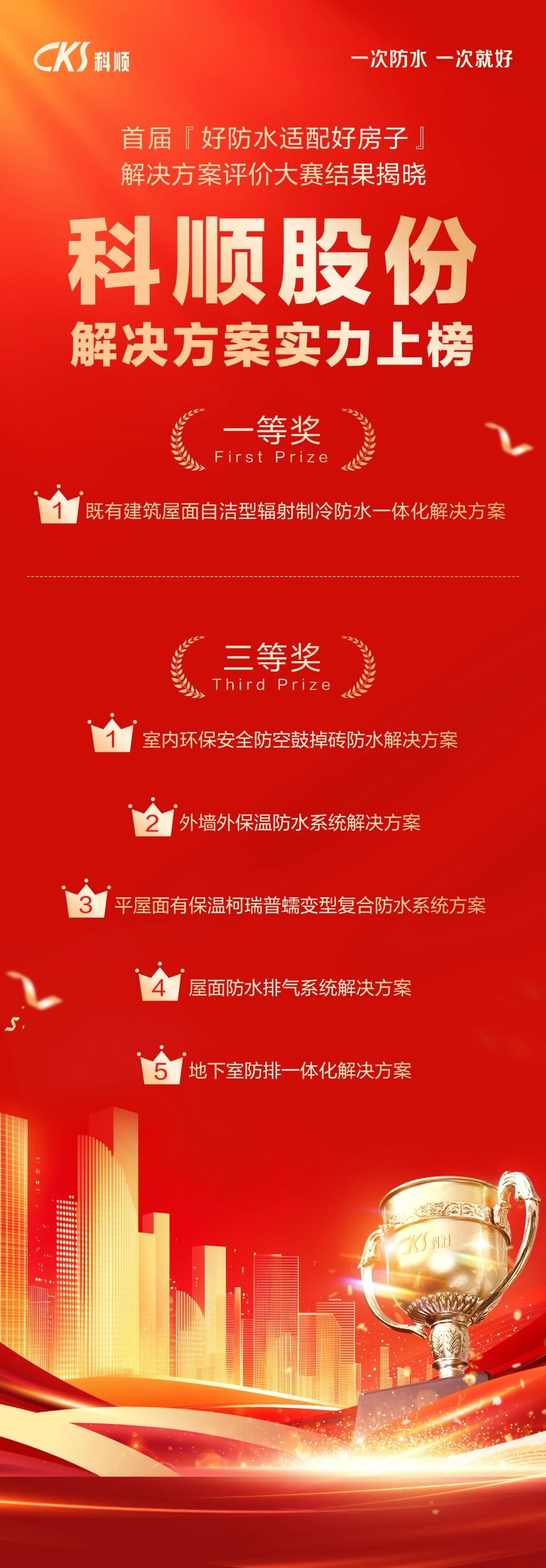 11月6日,由中国建筑防水协会主办的首届「好防水适配好房子」解决方案评价大赛获奖名单正式揭晓。科顺股份凭借深厚的技术积淀与精准的需求洞察,一举斩获六大奖项,以专业防水解决方案赋能“好房子”建设。