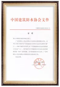 当选中国建筑防水协会副会长单位。