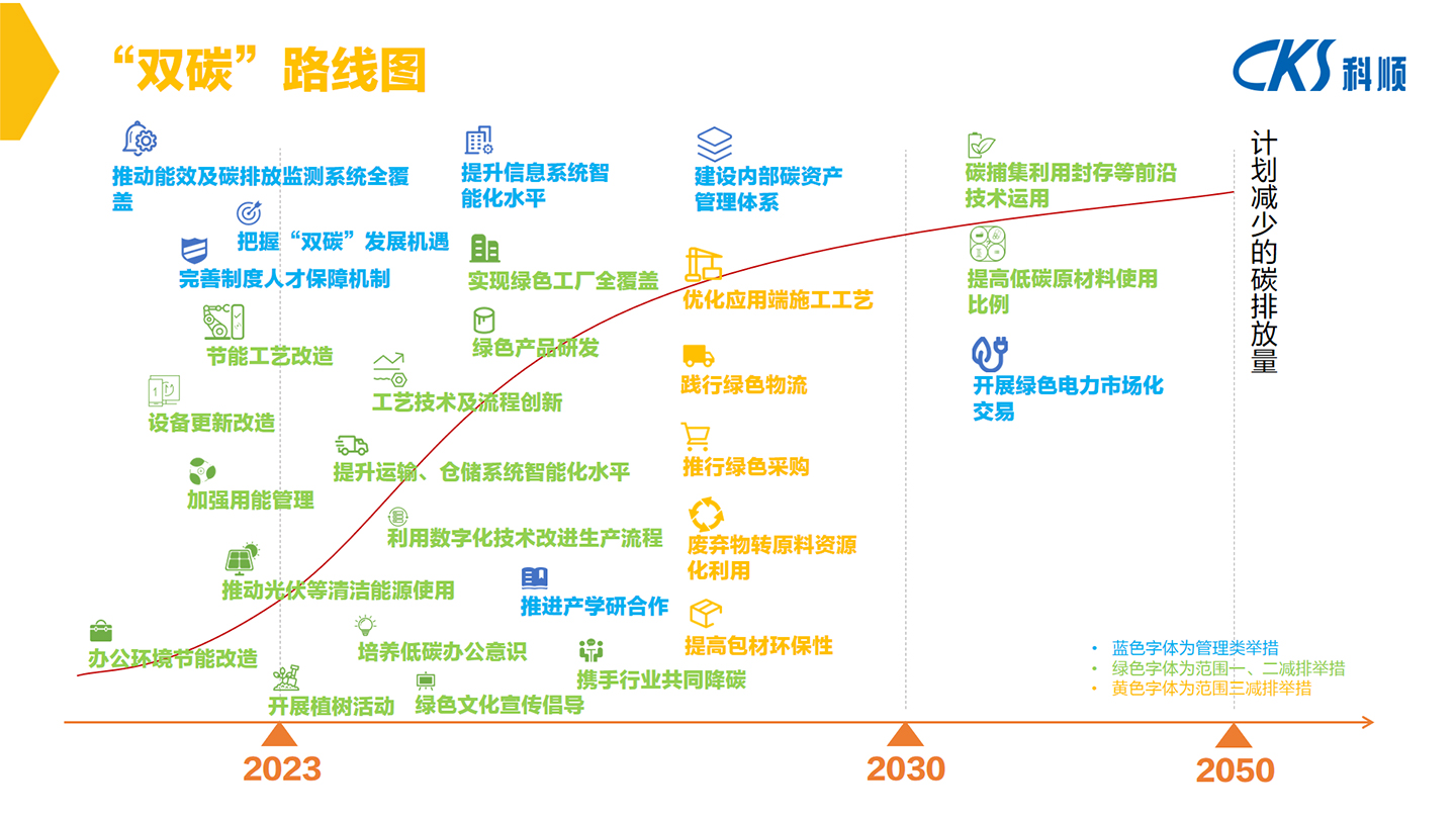 公司逐步开展碳排查,德州科顺已发布温室气体排放核查报告,渭南科顺进行年度产品碳足迹、厂区碳核查情况公示,公司部分产品取得产品碳足迹证书。