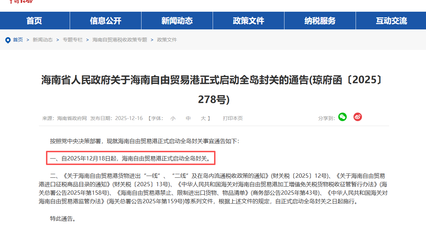 今日,海南自由贸易港(下称“海南自贸港”)全岛封关运作正式启动。