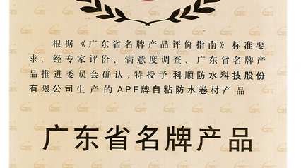 科顺APF自粘防水卷材再度获评广东省名牌产品