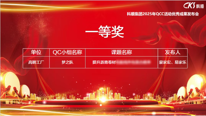 作为质量文化的有机组成部分,QCC活动已成为科顺股份推动精细化管理和协同创新的重要抓手,有效促进了管理能力与运营效率的持续提升。