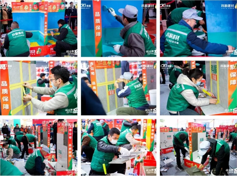 经过激烈的比赛角逐,由科顺职业技能培训学校派出的专业评审团现场打分,最终在参赛选手中产生了防水组、贴砖组、美缝组的冠、亚、季军奖和优秀奖,获奖师傅获得65寸高清电视、洗衣机、冰箱等丰厚的礼品和职业技能证书。