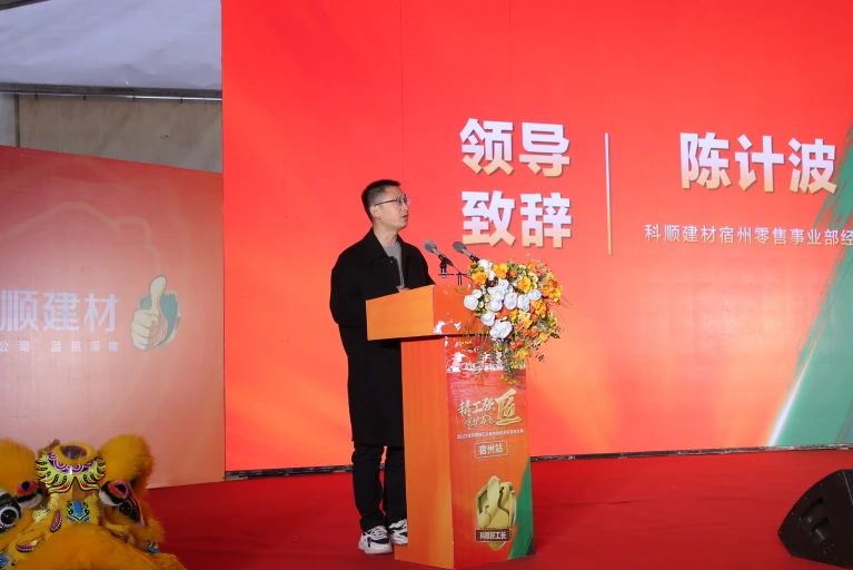 宿州科顺建材零售事业部经理陈计波上台致辞,他表示:宿州科顺防水旗舰店将在本地市场全面发力,致力于以优质的科顺产品和服务,满足广大消费者的需求,让更多人知科顺、用科顺。