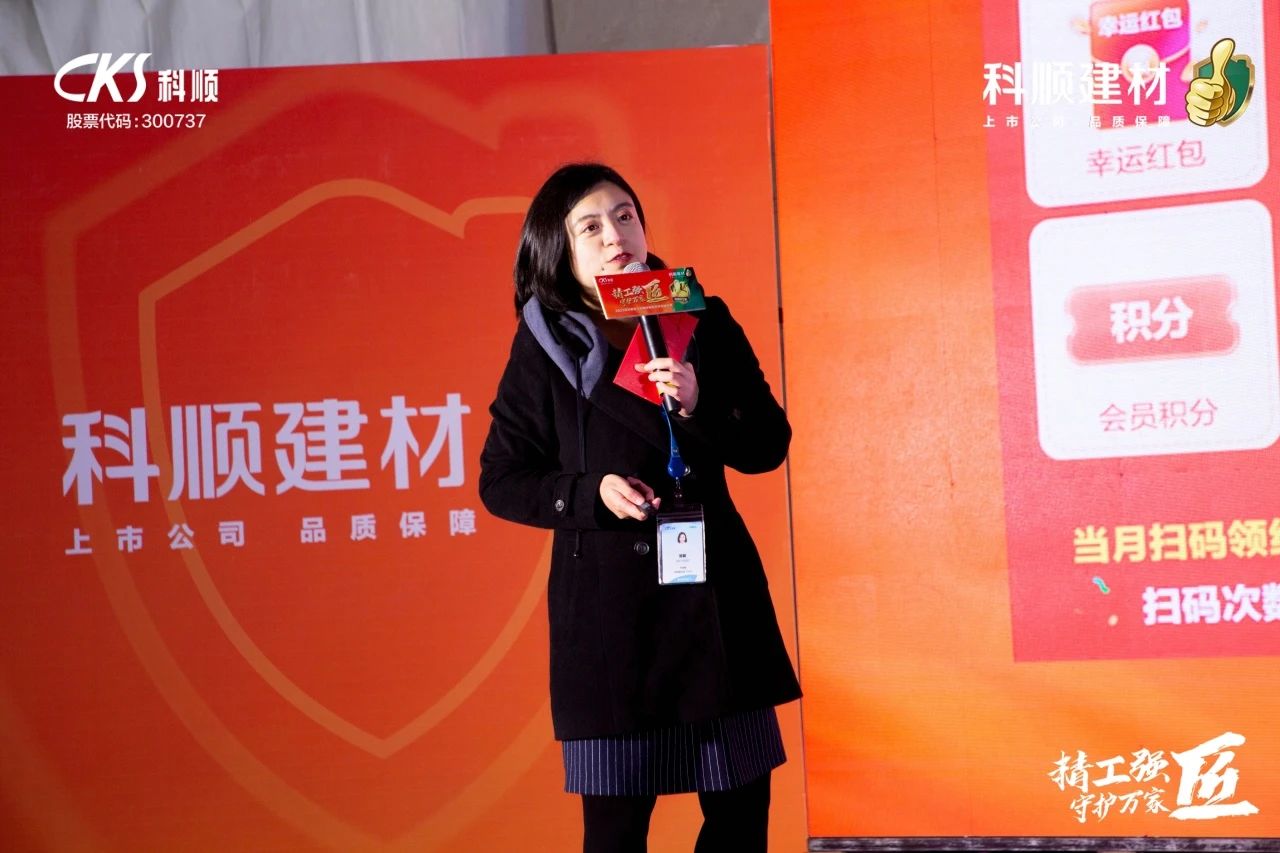 科顺建材市场部总监邓莉详细介绍了科顺好工长线上会员平台及科顺建材对会员师傅的暖心关怀活动,向师傅们传递品牌温度。