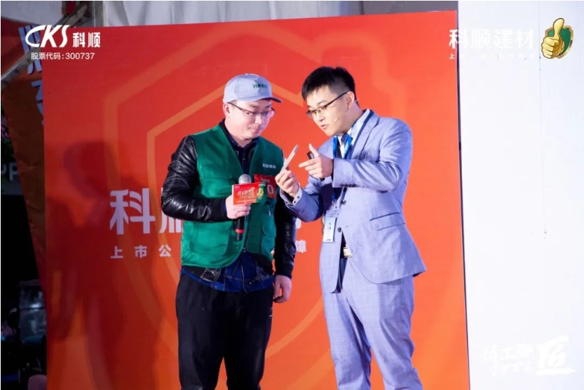 科顺股份集团市场中心产品经理范滔滔在现场展示了科顺建材产品的卓越性能,通过互动体验,师傅们更加深入地了解到科顺建材产品的特点和优势,进一步增强了他们对科顺建材的信任和认可。