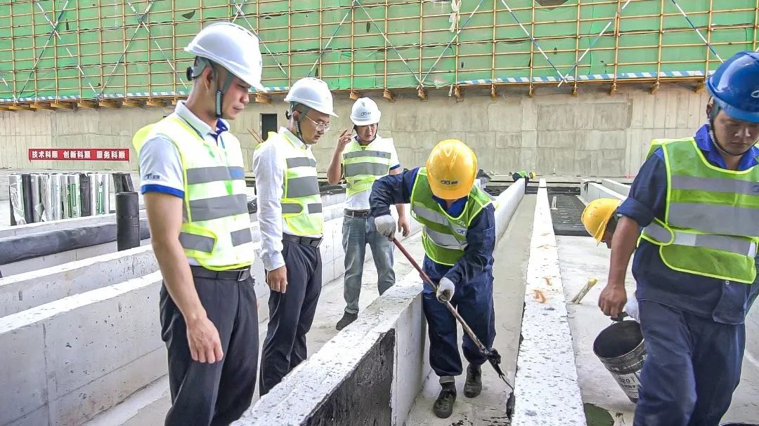 现场,科顺匠心防水人正忙碌地穿梭其间,以标准化施工、高质高效服务,助力建设世界一流高科技园区。