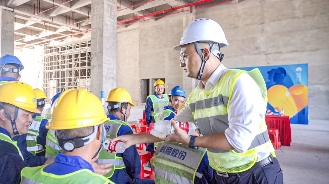 盛暑之下,科顺股份协同监理、总包单位,为防水匠人撑起防暑降温的“清凉伞”,开展“守护匠心防水人”2023科顺股份防水从业者关爱行动。