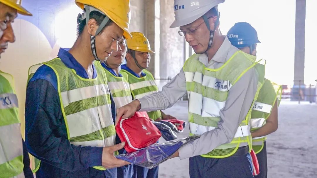 加强对一线建设者的关心关怀,为他们进行义诊,并普及高温作业、日常防护等自我保健知识。