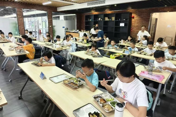 爱心托管班提供专业看护+监控全覆盖,家长可随时查岗。在饮食上,营养师定制儿童餐单,少油少盐无添加!时令水果、美味三餐准时投喂,给予职工孩子“尝得到的幸福感”。