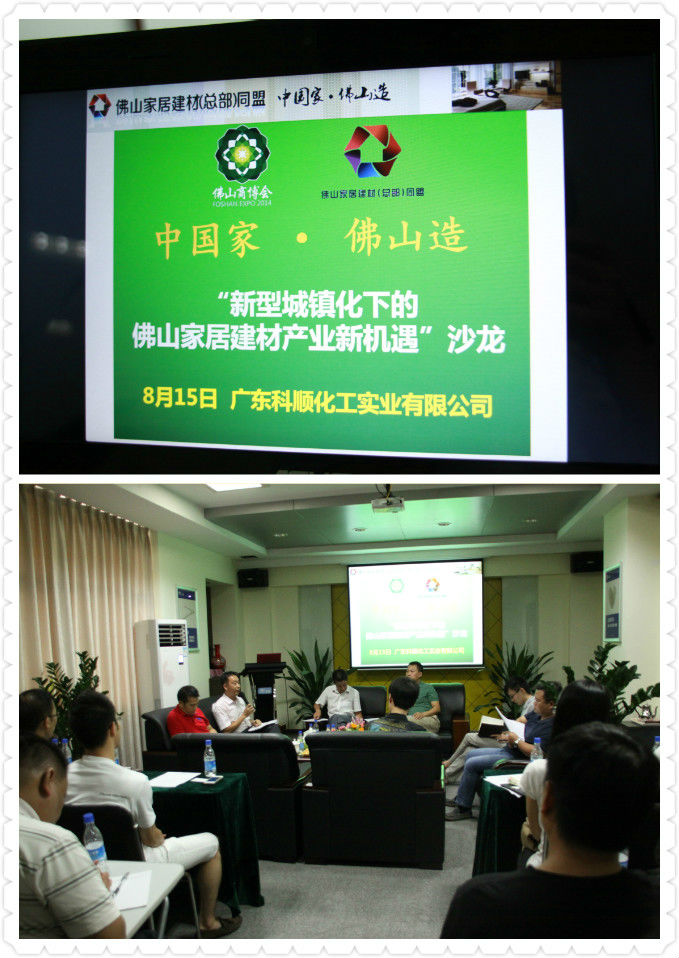 8月15日下午,佛山家居建材联盟轮值会议在广东科顺化工实业有限公司(总部)盛大召开。联盟秘书处李国尧、佛山工商联李德、工程采购营销部李祖田等联盟领导,中盛陶瓷、华隆涂料、高登铝业、本邦电器、万仕达木门、地中海卫浴、必达保安系统、拉格格住宅等联盟会员单位的董事长或相关领导代表出席了本次盛会。作为东道主,科顺公司董事长陈伟忠、常务副总孙崇实等,全程参与了本次会议,佛山日报也对本次会议进行了全程报道。