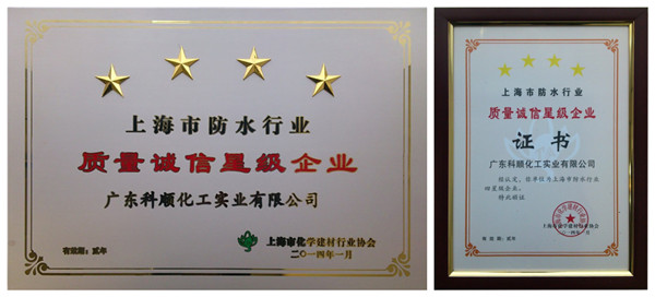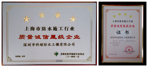 其中,在“上海市防水行业”评定中,广东科顺化工实业有限公司被评为质量诚信四星级企业;在“上海市防水施工行业”评定中,深圳市科顺防水工程有限公司被评定为质量诚信四星级企业。四星乃是本次质量诚信的最高评级。