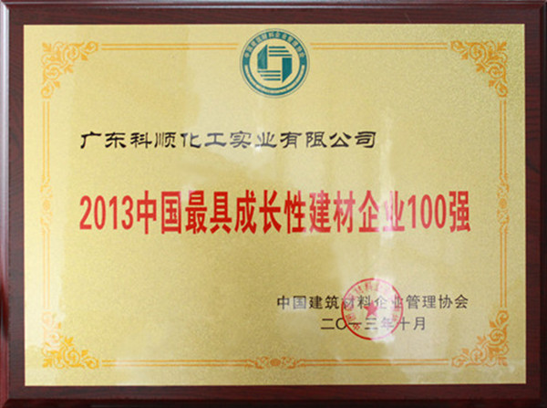 10月19日,由中国建筑材料企业管理协会主办的“2013中国建材企业发展论坛”和协会第七届二次理事会(扩大)会议在京召开。会议同期召开了2013“中国建材企业500强”、“民营建材企业100强”、“最具成长性建材企业100强”发布会。广东科顺化工实业有限公司凭借近几年快速稳健的发展,一举获评“中国建材企业500强”、“中国最具成长性建材企业100强”两项荣誉。