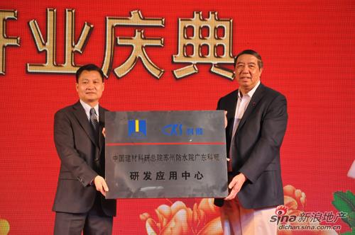 中国建筑防水协会理事长朱冬青为科顺防水授牌