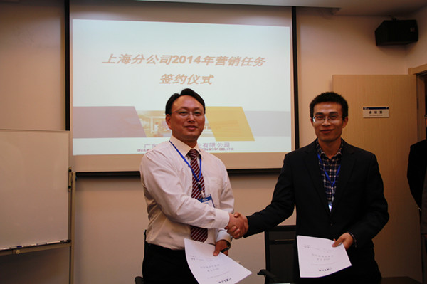 工作总结会议结束后,紧接着进行了科顺上海分公司2014年营销任务签约仪式,上海分公司总经理汪显俊与各营销部门负责行人成功完成签约。