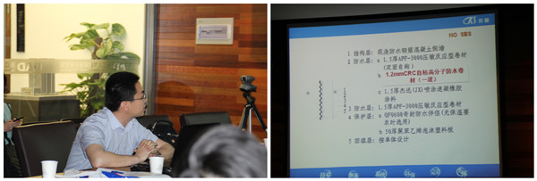 邓涛从防水发展的历史到最新防水材料的应用做了精彩分享,对科顺APF3000压敏反应型自粘高分子防水卷材、CRC反应型防水卷材(非沥青预铺式高分子自粘防水卷材)、YT非固化橡化沥青防水涂料、JX喷涂速凝液体橡胶防水涂料等数款新产品的特点、优势、施工工艺等做了详细讲解,并就其性能、价格、安全等与传统的防水材料进行了对比。