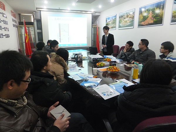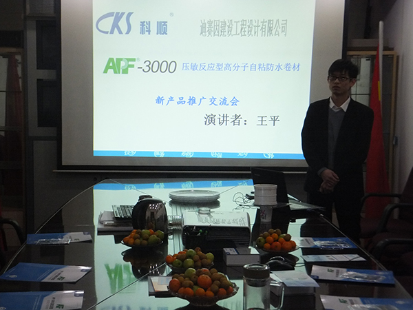 迪赛因建筑设计院总经理在会上首先发表讲话,他指出了此次推介会对于加强建筑师对专业知识了解的重要意义,表达了与科顺防水长期沟通合作的美好愿望。接着科顺重庆分公司技术负责人王平重点针对APF3000压敏反应型自粘高分子防水卷材的特点、优势、施工工艺等做了精彩的演讲,王平把APF3000的性能、价格、安全等同传统的自粘卷材进行对比,系统地介绍了APF3000的优势,并结合材料应用的工程案例与在座设计师进行了沟通交流。会上各项目负责人和建筑设计师运用科顺防水公司提供的各种产品试样做起了实验,亲眼见证了APF3000优良的防水功能。会议尾声阶段,迪赛因建筑设计院项目总工刘工对本次推广会作了总结,他指出因为建筑师们一般都是在室内画图,对实际工地的施工情况不是很了解,而这样的推广交流能使建筑师们的日后设计工作更加精确而专业。包括刘工在内的一众设计师们极力肯定了本次推广会对设计院的积极意义,他们还建议以后的推广交流会议可以提供一些现场施工视频供设计师们学习。