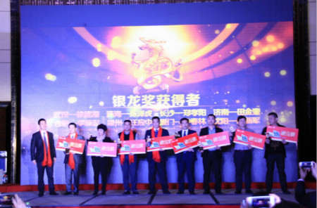 27日下午,首先进行的是激动人心的颁奖环节。除了延续前几届经销商发展峰会奖项,即颁发出金龙奖2名、银龙奖8名、腾龙奖7名、聚龙奖8名外,还增设了“销售新锐奖”,南京、珠海、顺德、福州等区域,共30几位经销商得到了不同形式的表彰,为其他的经销商做了表率。