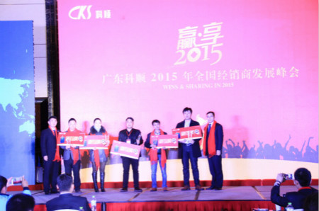 2015年1月26日至29日,广东科顺化工实业有限公司在湖南省长沙市开福区万达文华酒店举行了为期四天的“2015年全国经销商发展峰会”,公司董事长陈伟忠、副总经理方勇、副总经理孙崇实等领导以及科顺全国各地的经销商一百余名全国重点经销商出席了本次盛会。本次会议以“赢享·2015”为主题,在感谢全国各地经销商们为科顺作出的贡献的同时,亦共同探讨了防水行业的发展趋势以及科顺公司的发展方向。