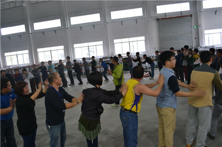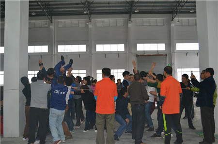 随着培训老师的“大家早上好”,参与人员“好、很好、非常好、耶!”的口号响起,高明厂的拓展训练正式拉开序幕。参与人员被分为6个小组,分别是“野狼队”、“猛虎队”、“龙虎队”、“大刀队”、“雄鹰队”和“潜龙队”,每个小组都为自己的团队取了“队歌、口号”,并由队长组织上台演练。
