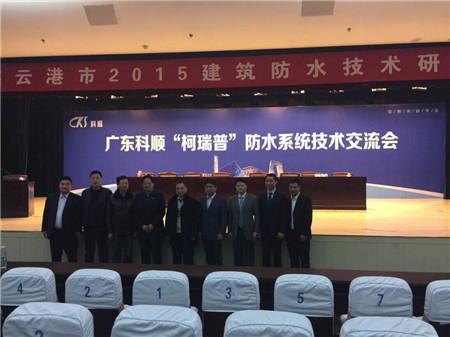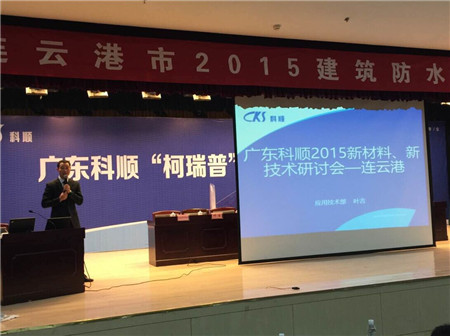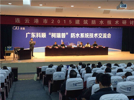 3月27日,由连云港市建筑材料和建筑机械行业协会主办,科顺承办的连云港市2015年建筑防水技术研讨会在连云港市委党校一号报告厅顺利落下帷幕,科顺公司副总经理孙崇实,应用技术总监叶吉,南京办事处经理张付仔等出席了本次会议。会上,科顺新利器“柯瑞普CREEP”以其优越的防水性能博得了现场专家团及众开发建设单位200多人的亲睐,擂起科顺抢占江苏防水市场的战鼓。