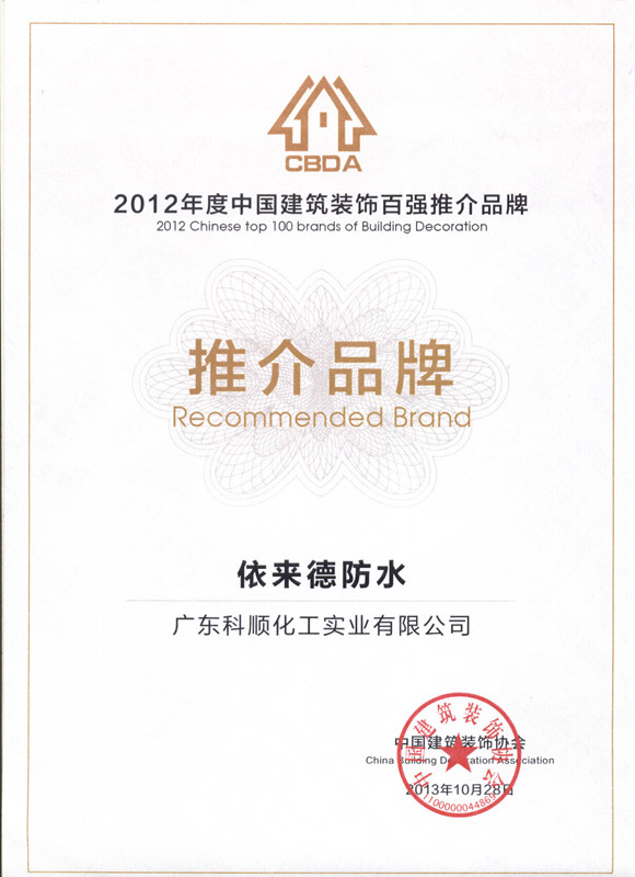 11月6日至8日,中国建筑装饰百强企业峰会在安徽马鞍山隆重展开。广东科顺化工实业有限公司受邀出席了本次峰会,科顺旗下品牌“依来德”在会上被授予“2012年度中国建筑装饰百强推介品牌”。