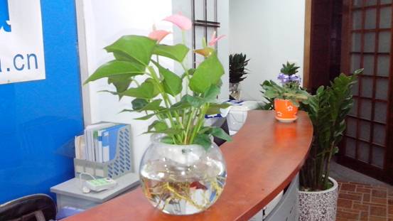 在盆盆绿意盎然的植物装点下,装修后的办公室焕然一新,生机勃勃。