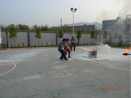 随后,总指挥还组织各参与消防演练的人员到篮球场集中,进行灭火器及消防水带实操演练。实操前,指挥官为大家讲解了灭火器的正确使用方法、 灭火步骤、灭火姿势和消防水带的正确使用方法等,然后各参与人员依次进行实操演练,现场反应热烈。