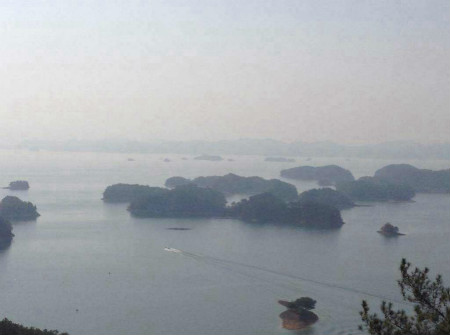 随后我们来到了千岛湖海拔最高的岛屿——梅峰岛,正所谓“不上梅峰观岛,不识千岛真面目”。要想一览众岛风貌,必须坐缆车,我和同伴也兴致勃勃地体验了一番。我们坐缆车登上了梅峰观景台,三百多座大大小小的岛屿尽收眼底,只见群岛星罗棋布,港湾纵横交错,大岛如山,小岛如船,个个清脆欲滴,温婉如玉。一览众山小的感觉油然而生,你会惊叹大自然的杰作,是那么的巧夺天工,毫无瑕疵。就连那烟波浩渺的湖水,也是那么的娟秀灵气。