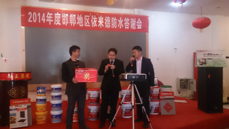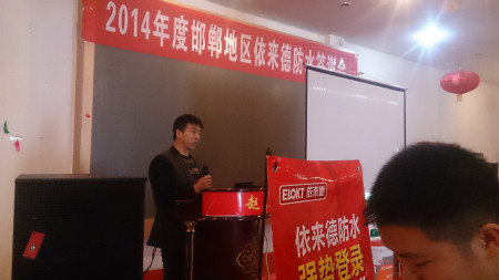 雾霾散尽,阳光明媚,难得一见的好天气早已预示着一场防水盛会即将席卷邯郸大地。经过近半个月的精心筹划,依来德防水邯郸地区推广会于12月16日盛大召开!本次会议吸引了整个邯郸地区包括众多家装公司、经销商、专业人士等160余人参加,一度人气爆棚。