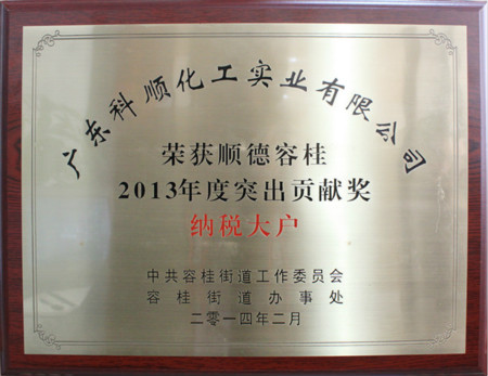 2月13日,科顺荣获容桂“年度纳税大户”和“公益捐赠突出贡献奖”