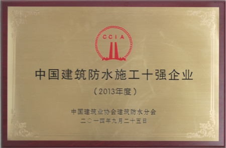 9月25日,深圳科顺荣获2013年度“中国建筑防水施工十强企业”称号
