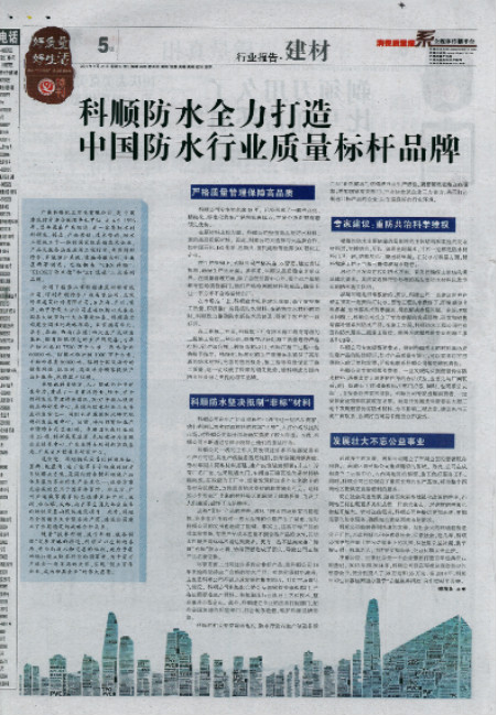 10月,科顺携手《消费者质量报》打造防水行业质量标杆品牌