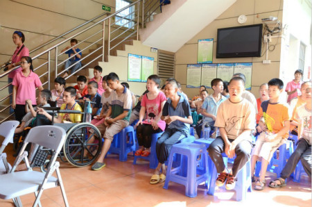 活动开始前,院里面的所有成员已经在活动中心广场集中就坐。看到来访的嘉宾,他们禁不住欢呼雀跃,脸上都洋溢着灿烂的笑容。活动正式开始后,主持人依次介绍了探访的街道办领导及科顺公司的负责人。其后,园长陈金伙先生上台为嘉宾介绍了容桂仁爱园的基本情况。