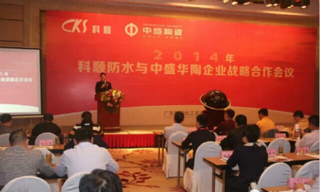 10月13日,2014年广东科顺化工实业有限公司与中盛陶瓷有限公司战略合作会议在济南盛大召开。科顺防水董事长陈伟忠、中盛陶瓷董事总经理何润垣等双方企业高管以及各自的核心经销商团队总共100余人齐聚山东济南索菲特银座大饭店,共同见证两大企业战略合作的正式启动。