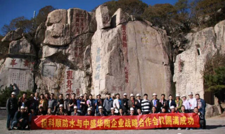 15日会议结束后,科顺防水与中盛陶瓷双方企业高管以及各自的核心经销商团队一同去登泰山。在泰山顶上,俯瞰群山,尽收眼底,饱览祖国山河壮丽,领略泰山石敢当之情怀。
