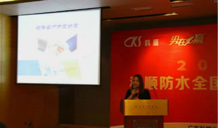 紧接着,科顺北京分公司副经理陈冬青向各位经销商做了详尽细致的战略客户开发实战培训。