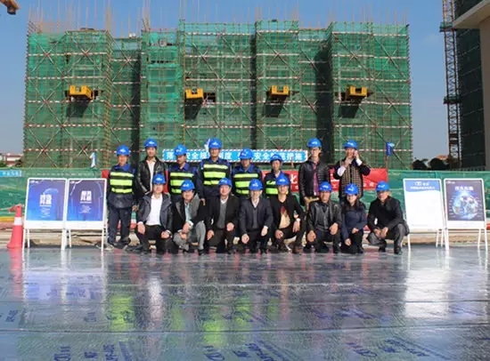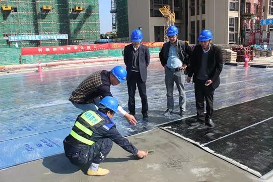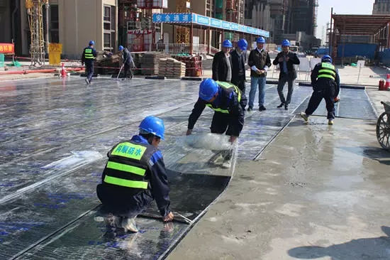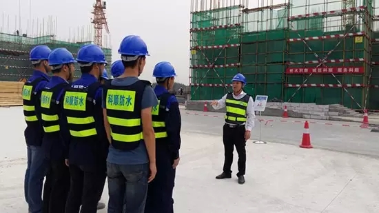 开工首日,科顺防水标准化施工团队将对地下室顶板进行湿铺施工,为表重视,科顺集团旗下工程公司副总经理刘国华、工程经理蒋松林等人员到现场视察指导,同时总公司应用技术经理丁贵奇也来到现场作技术支持。