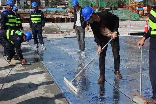 “我们重视着每一项工程,因此每个步骤都必须做到严丝合缝。”刘国华说,“以今天的施工为例,我们确定了‘技术交底——施工培训——清理基面——弹线定位——预铺卷材——刮涂水泥浆——铺贴卷材——滚压排气处理——保护处理’的施工工序,科顺防水标准化施工团队经过专业的培训及考核,也拥有多个大型项目的施工经验,我有信心,这次大家必定也能出色地完成任务。”