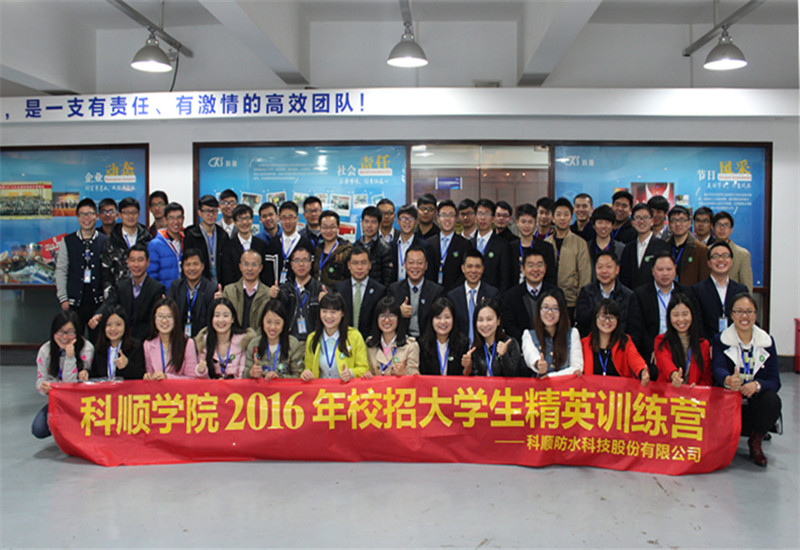 “新梦想,心动力,欣未来“!2月25日上午,科顺防水2016年校招大学生精英训练营正式启动,一批新血液、新力量开始为科顺防水注入新活力!