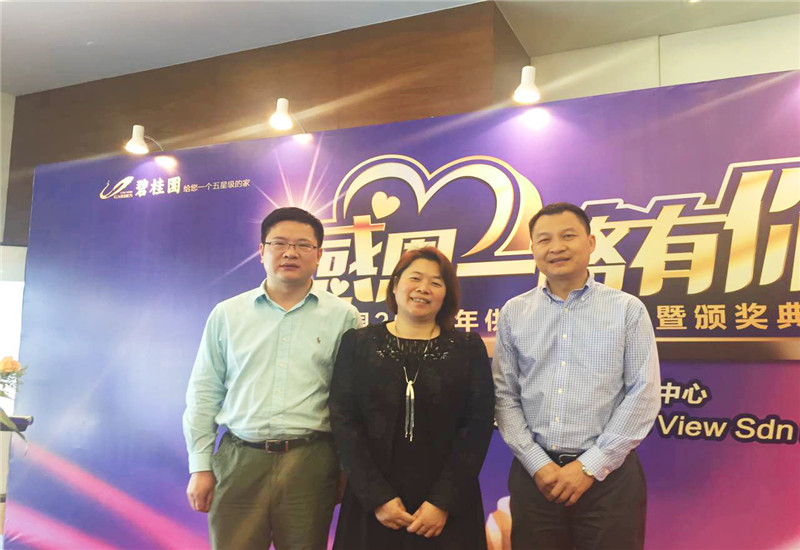 3月10日上午,以“感恩一路有你”为主题的2016年度碧桂园集团供应商大会暨颁奖典礼在马来西亚碧桂园旗下的森林城市销售现场隆重举行,科顺防水科技股份有限公司董事长陈伟忠及副总经理吴志远受邀出席。颁奖典礼上,碧桂园集团公布2015年度优秀供应商名单,科顺防水凭借优质的产品和服务,赢得碧桂园集团的高度认可与肯定,在众多供应商单位中脱颖而出,获颁碧桂园集团“2015年度优质服务奖”殊荣。