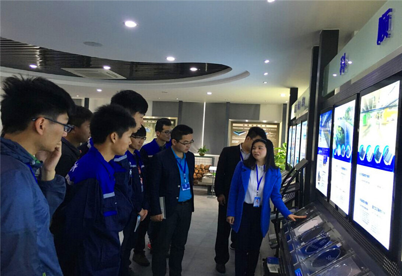在叶总与技术推广工程师高敏的带领下,学院们参观了工厂生产车间和防水展厅,通过叶总与高工的现场讲解,大家对生产工艺也有了进一步的认识与了解。接着,高工针对柯瑞普拉伸测试机、高温演示仪进行现场演练,学员们也主动上台进行演示,以此加深印象。