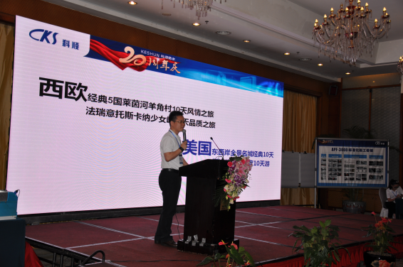随后,科顺防水华西大区总经理何晓军发言。他为大家带来了两个好消息:一是科顺防水在2016年上半年度同比增长了38.87%,其中华西大区取得了67.78%的傲人增长业绩,这组振奋人心的数据有力地证明了科顺防水有着极强的发展潜力,坚定了所有与科顺防水合作朋友们的信心;二是为了感恩回馈长期以来一直支持科顺防水的朋友们,科顺防水推出了“千人欧美游”的奖励政策,长达十天的欧美经典旅游路线、全程特色五星级酒店入住、科顺防水随行工作人员全程提供管家式服务的纯玩计划,随着与会人员的踊跃参与,活动现场的气氛被推至高潮!
