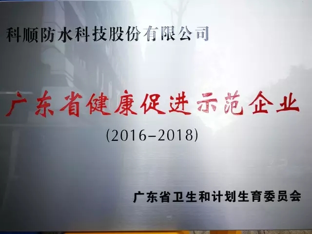 喜讯|科顺防水荣获“广东省健康促进示范企业”称号