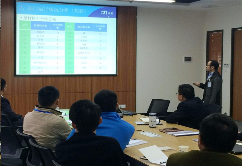 上午,品管中心QC经理杨永锋,为学员讲解了在日常工作中有效处理投诉的方法,并通过案例分析,对卷材和涂料产品可能产生的问题以及原因进行了分类详细地描述。