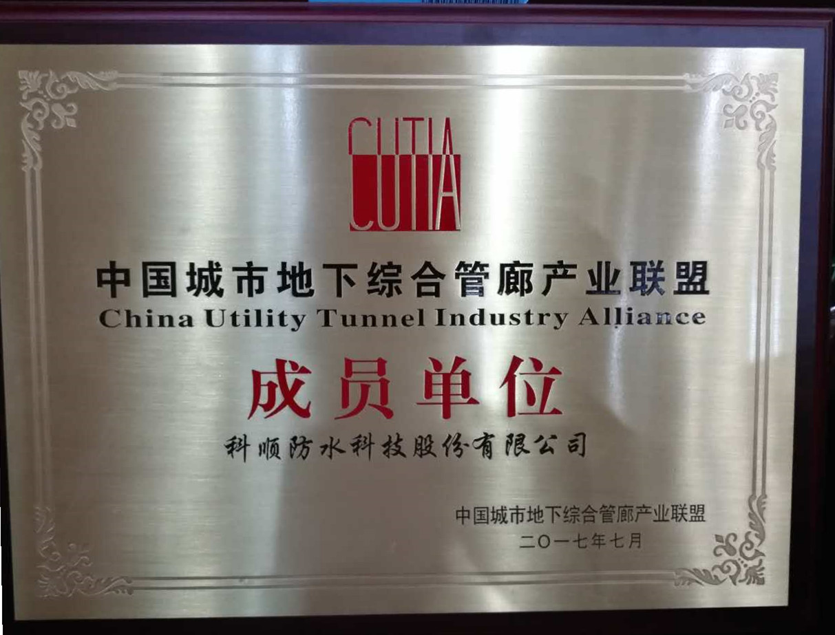 科顺防水当选中国城市地下综合管廊产业联盟成员