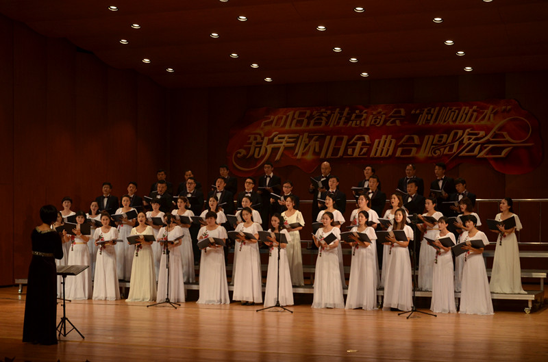 1月1日,由容桂总商会和科顺防水科技股份有限公司联合赞助的2018容桂总商会“科顺防水”新年怀旧金曲合唱晚会在容桂文化艺术中心大剧院隆重上演!容桂合唱团联袂顺德老干部合唱团重现经典,《南屏晚钟》《军港之夜》《菊花台》《龙的传人》《狮子山下》……一首首脍炙人口的歌曲经由男声、女声、混声深情演绎,为台下700多名观众献上一场华美的新年乐章,让他们度过难忘的元旦之夜。演出期间,现场掌声雷动,喝彩声不断。