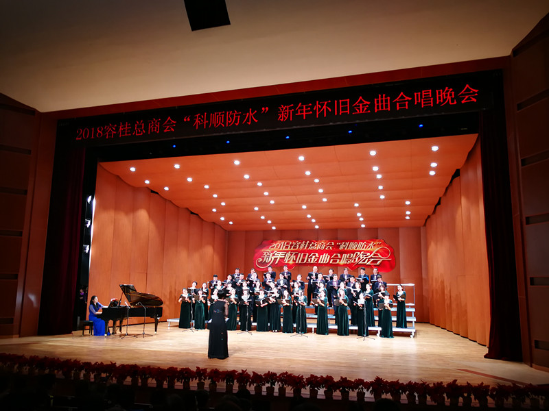 1月1日,由容桂总商会和科顺防水科技股份有限公司联合赞助的2018容桂总商会“科顺防水”新年怀旧金曲合唱晚会在容桂文化艺术中心大剧院隆重上演!容桂合唱团联袂顺德老干部合唱团重现经典,《南屏晚钟》《军港之夜》《菊花台》《龙的传人》《狮子山下》……一首首脍炙人口的歌曲经由男声、女声、混声深情演绎,为台下700多名观众献上一场华美的新年乐章,让他们度过难忘的元旦之夜。演出期间,现场掌声雷动,喝彩声不断。