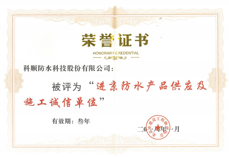 这些荣誉是协会专家、社会各界对科顺股份的认可,也是对科顺人秉承“技术科顺、诚信科顺、服务科顺”的理念在北方市场深耕细作的褒奖。
