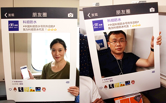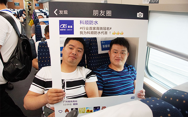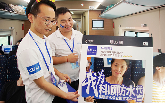 “科顺防水号”高铁列车已经启程,这是防水行业首次冠名高铁,见证着科顺防水强大实力与优秀创新能力。科技创新与营销模式创新结合,让科顺防水前行的步伐愈发迅速。作为防水行业领先品牌,科顺正以系统动力不断拓展行业与品牌影响力——让更多人了解防水,然后了解科顺。在顺利首发以后,“我为科顺防水代言”活动在启航的列车里盛大举行,并吸引了众多乘客参与。